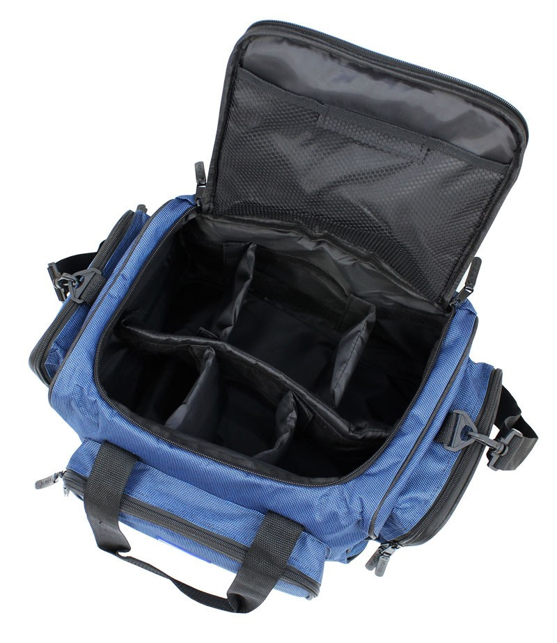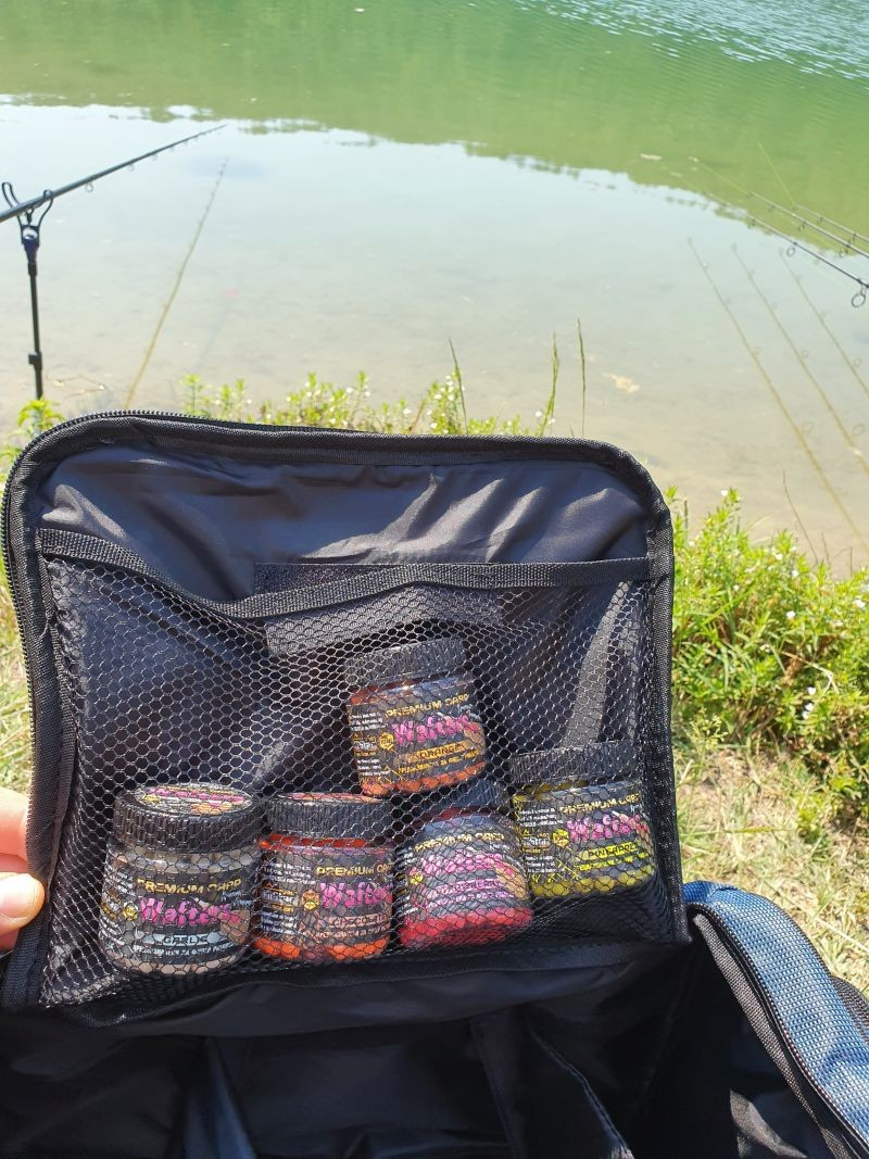 Чантата има два големи странични джоба, един голям преден джоб с ластична лента за инструменти и основно отделение, в които може да разпределите формички за фидер, кутии за монтажи, кутии за стръв и други риболовни аксесоари.
