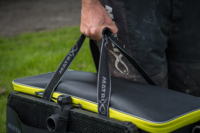 Използвайте дръжките и страничните джобове за удобно транспортиране и съхранение на риболовни принадлежности.