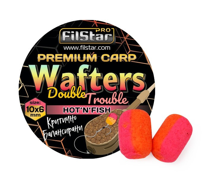 Първокласни дъмбели за фидер Dоuble Trouble Wafters от серията Filstar Premium Carp, изработени с комбинация от два цвята за още по-голяма атрактивност.