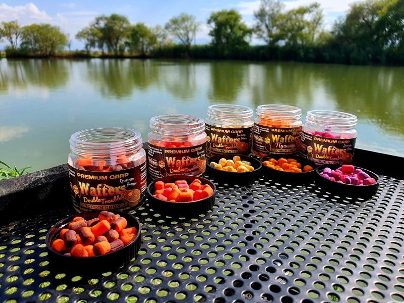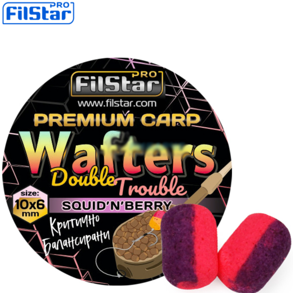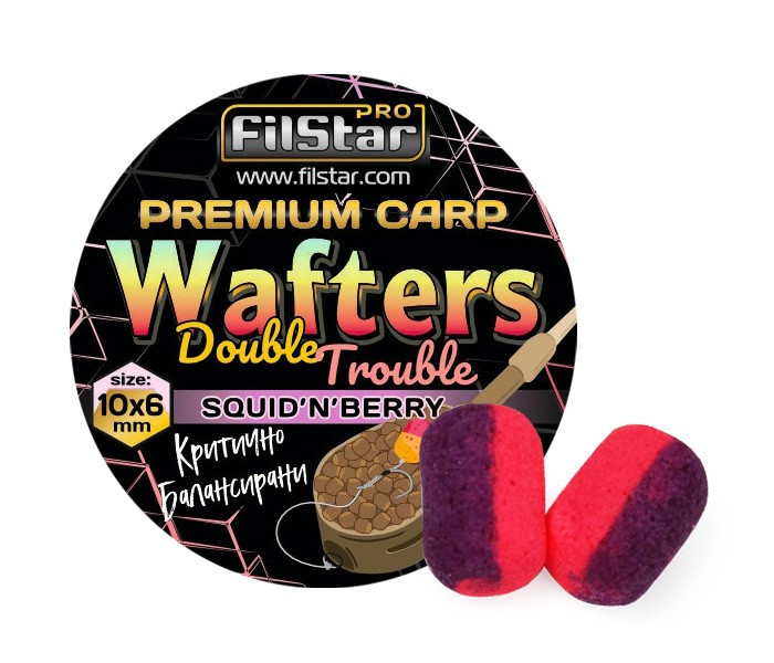 Първокласни дъмбели за фидер Dоuble Trouble Wafters от серията Filstar Premium Carp, изработени с комбинация от два цвята за още по-голяма атрактивност.