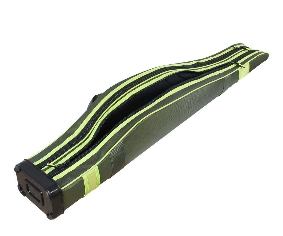 Висококачествен двоен твърд калъф от линията Tackle Code, подходящ за две спининг или боло въдици с макари. Предлага се в два варианта: TC 129 за пръчки с дължина на снадката до 1.20 m и TC 102 съответно за 1.50 m. Класически двоен модел с предвидено пространство за макари, позволяващ надеждно съхранение и удобно транспортиране на въдиците с монтирани към тях макари. Калъфът е покрит с устойчива материя, отвътре има твърда вложка и подплатени разделители, а в долния си край солидна PVC основа. Разполага още с регулируема подплатена презрамка, удобна дръжка за носене на ръка и устойчиви ципове с лого. Изключителен продукт от линията Tackle Code, който ще ви зарадва с практичен дизайн и модерна визия.