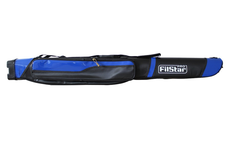 Единичен твърд калъф от изкуствена кожа KK-204 в комбинация от черен и син цвят и бяло FilStar лого.