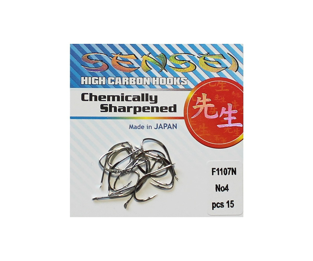Куките Sensei Blue - F1107N са изработени от висококачествен карбон, което им придава необходимата здравина и лекота. Никеловото покритие не само че увеличава тяхната издръжливост, но и предотвратява корозията, което е особено важно при риболов в солена вода. Всеки пакет съдържа 15 броя куки, което осигурява достатъчно количество за дълги риболовни сесии.