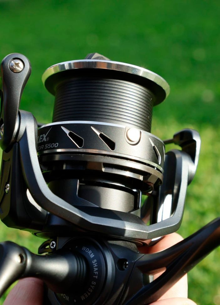 Качествено и солидно тяло от графит, комбинирано с алуминиева шпула и метална дръжка.