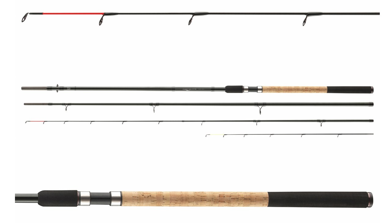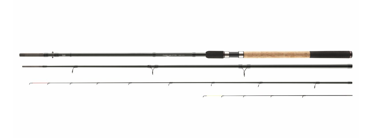 Daiwa Aqualite Feeder серията притежава съвременен дизайн и функционалност. Добре балансирана бланка от високомодулен карбон, устойчива на усукване, което допринася за далечни и прецизни хвърляния. Моделите с по-тежки акции са оборудвани с широки водачи на върховете, като това позволява използването на шок лидери. Фидерът е с хармонична крива на огъване и големи резерви от мощност, подходящ за риболов на едри риби като големи бели мрени или шарани. Страхотен бюджетен избор за риболов на дистанции с метод фидер.