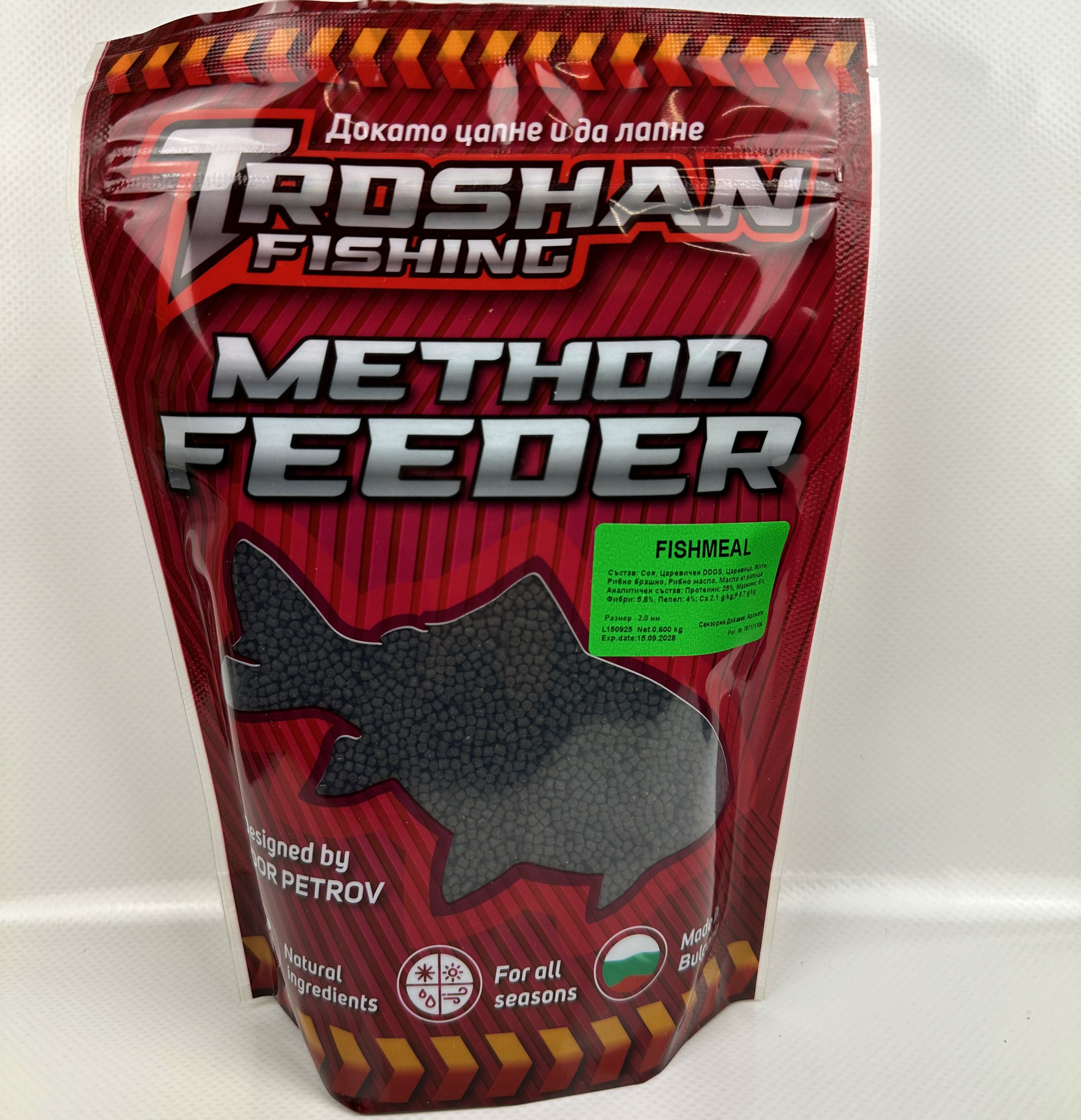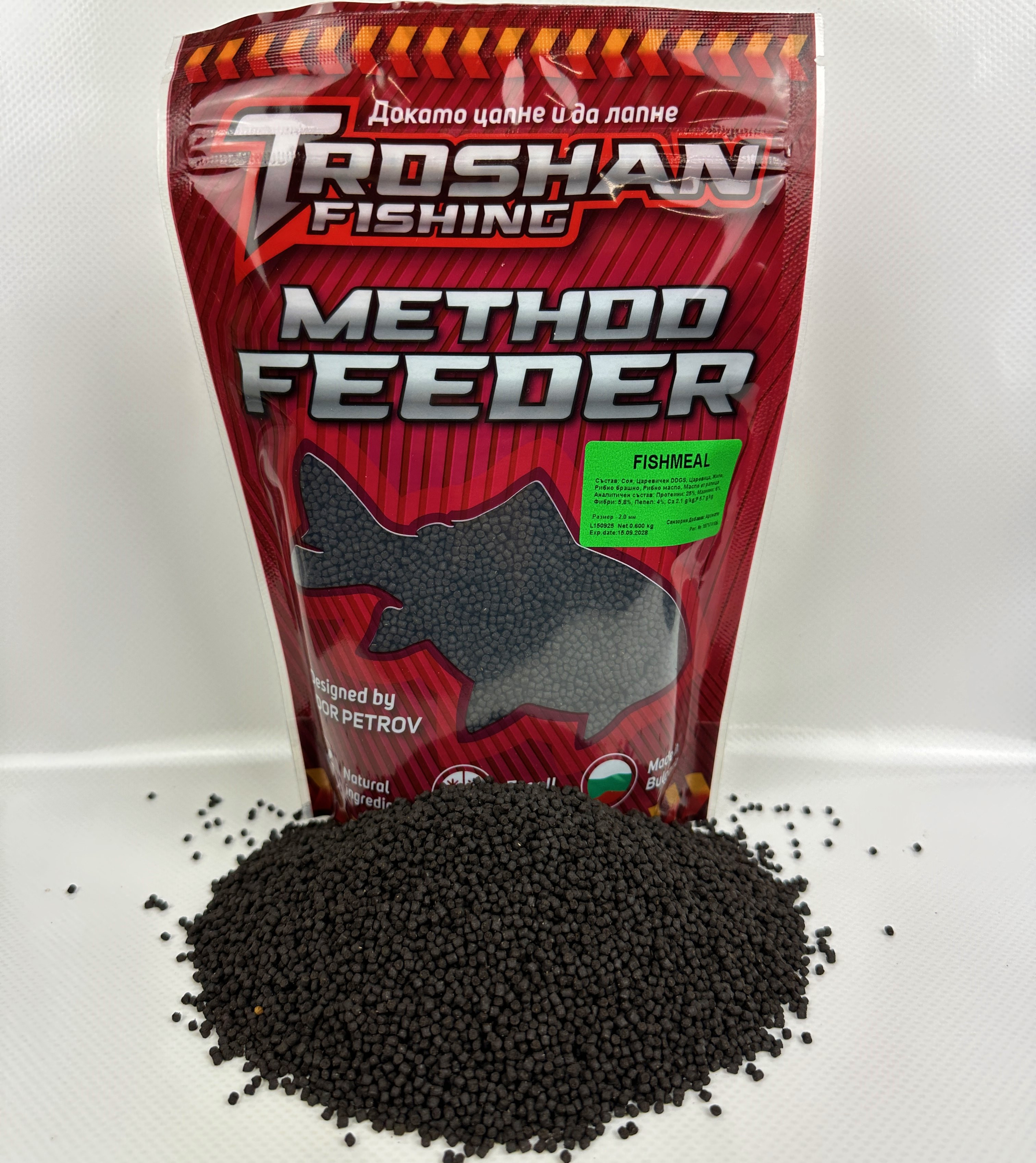 Method Feeder Пелети Troshan Fishing - Fishmeal 2mm са специално създадени за успешен риболов, като предлагат висококачествена храна за риби, която привлича и задържа вниманието на рибата дълго време. Тези пелети са идеални за метод фидер риболов и са подходящи за всички любители на риболовни принадлежности, които търсят надеждно решение за улов на различни видове риба.