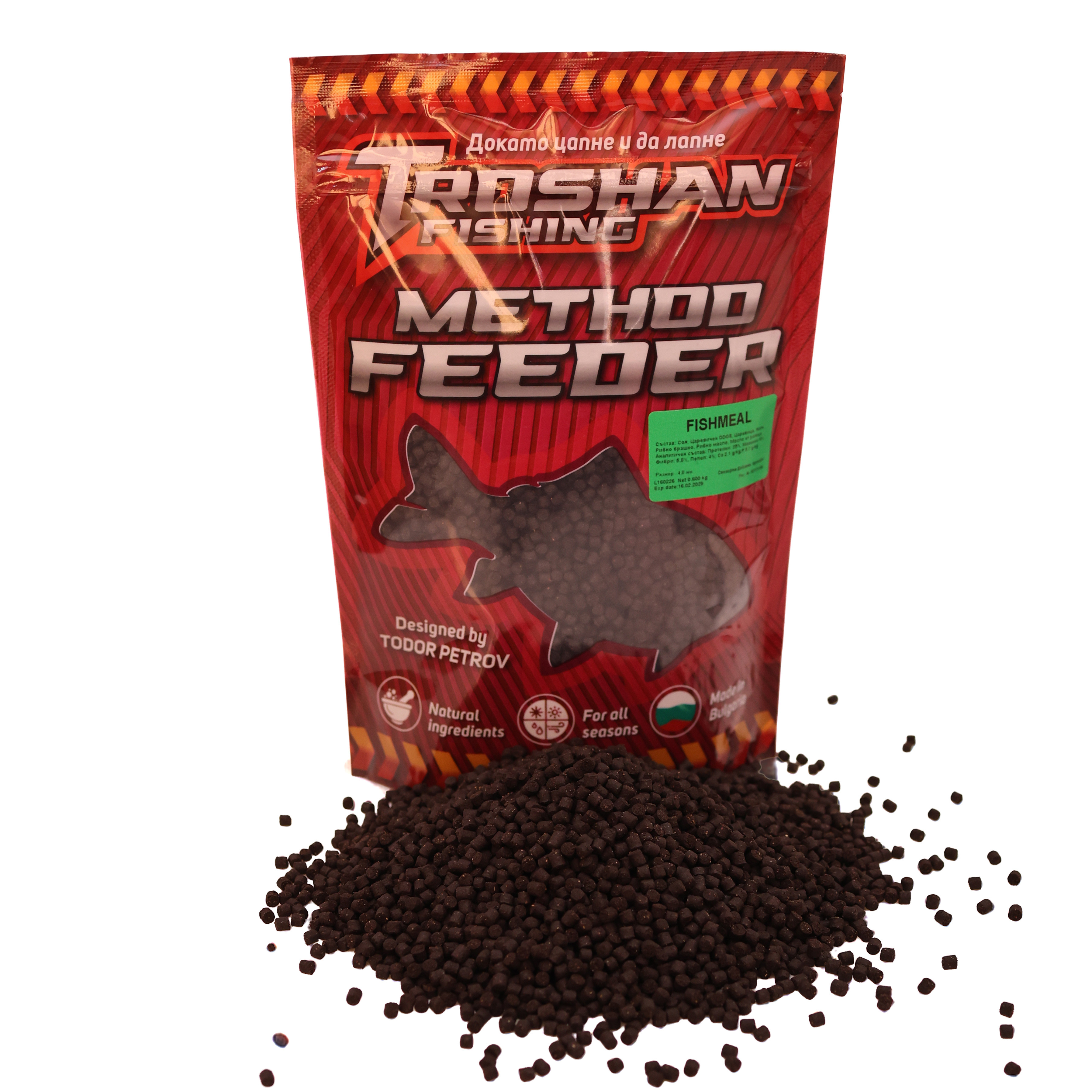 Method Feeder Пелети Troshan Fishing - Fishmeal 4mm са специално създадени за успешен риболов, като предлагат висококачествена храна за риби, която привлича и задържа вниманието на рибата дълго време. Тези пелети са идеални за метод фидер риболов и са подходящи за всички любители на риболовни принадлежности, които търсят надеждно решение за улов на различни видове риба.