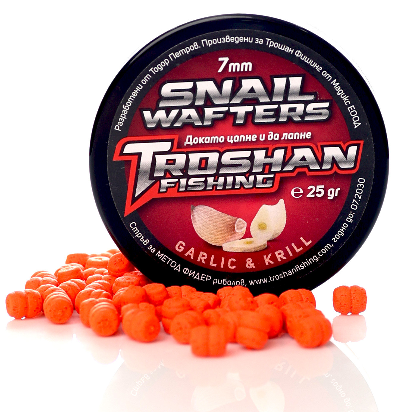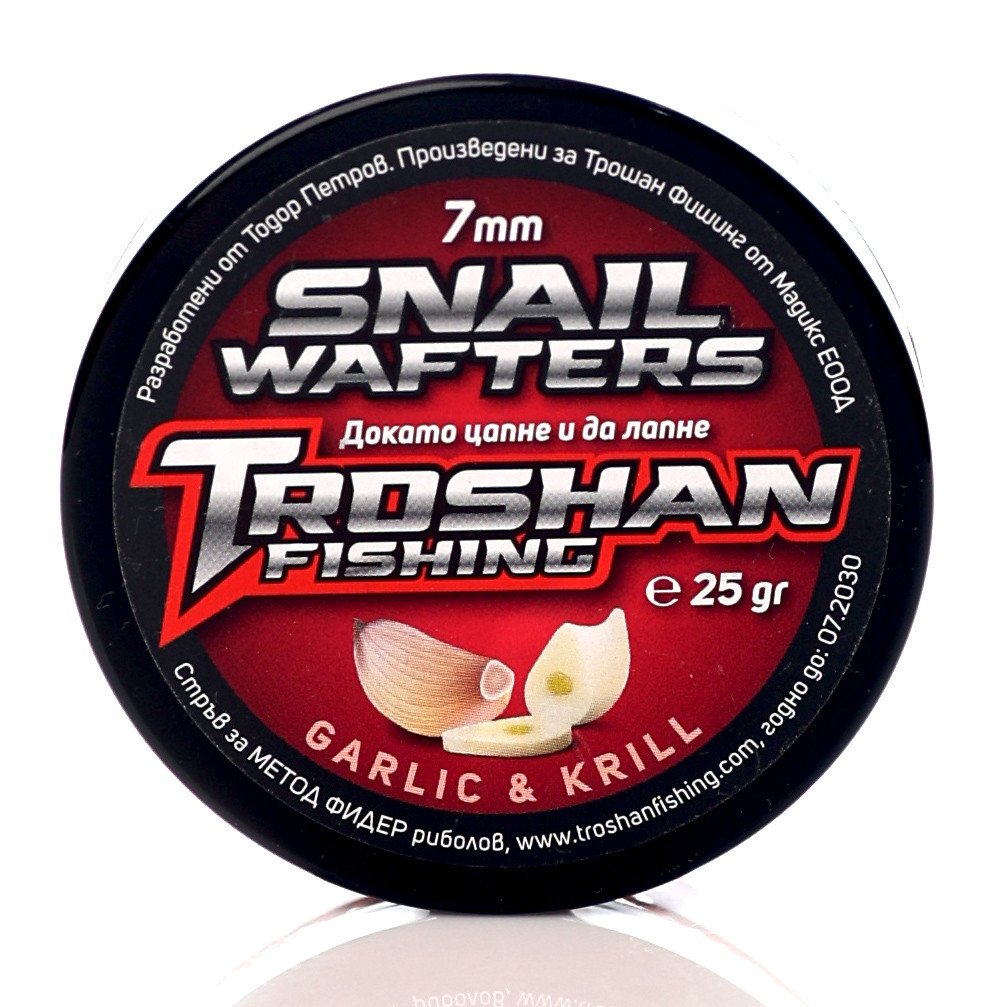 Добре дошли в категорията, посветена на една от най-ефективните и иновативни стръв за риболов на шаран – Snail Wafters Troshan Fishing - Garlic & Krill 7mm. Тази уникална стръв е разработена, за да предложи перфектния баланс между плуваемост и тегло, което я прави неустоима за рибата. Със своите неутрално балансирани свойства, тя се позиционира идеално над дъното, имитирайки естествена храна и привличайки дори най-предпазливите екземпляри. Създадена от експертa в риболова Тодор Петров, тази примамка е задължителен елемент в чантата на всеки сериозен риболовец.