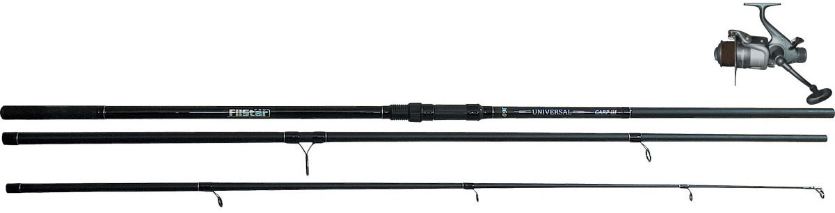 Въдица: Universal Carp III на 3 части, дръжка с "anti-slip termo-shrink" покритие, усилена с допълнителна спирална оплетка, SIC водачи, дължина 3.60m, акция 3lbs.