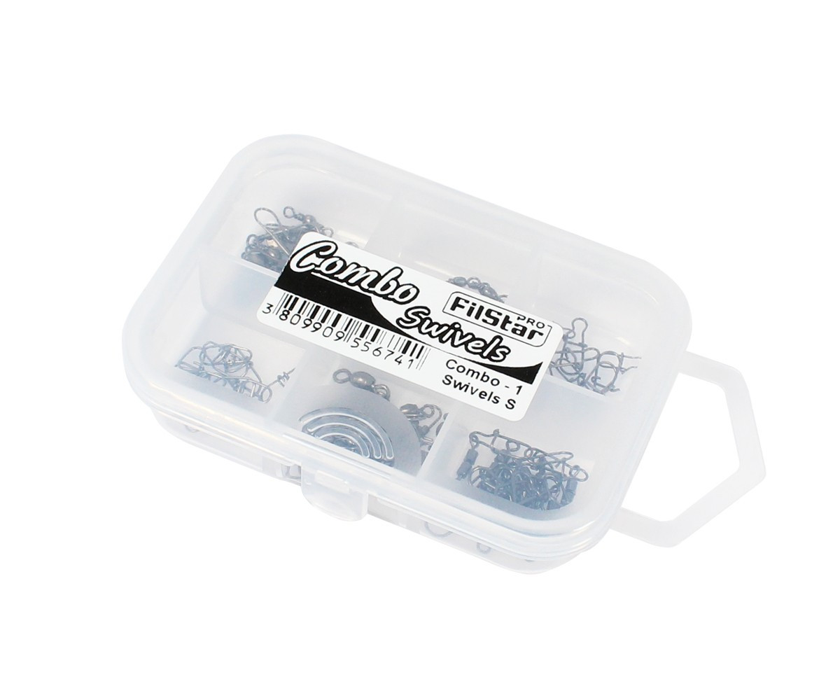 Комплектът Filstar Swivels Combo 2 съдържа внимателно подбрани вирбели с карабинки и карабинки, подредени в малка удобна кутийка с клик закопчаване.
