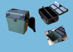 Многофункционален куфар за риболов с дълга дръжка за рамо осигуряваща лесно транспортиране и по-голям комфорт. Снабден е с едно общо голямо отделение за събиране на по-обемни принадлежности и други две по-малки, включително четири кутии - може да съхраните всичко необходимо - примамки, хляб, стръв и други аксесоари.