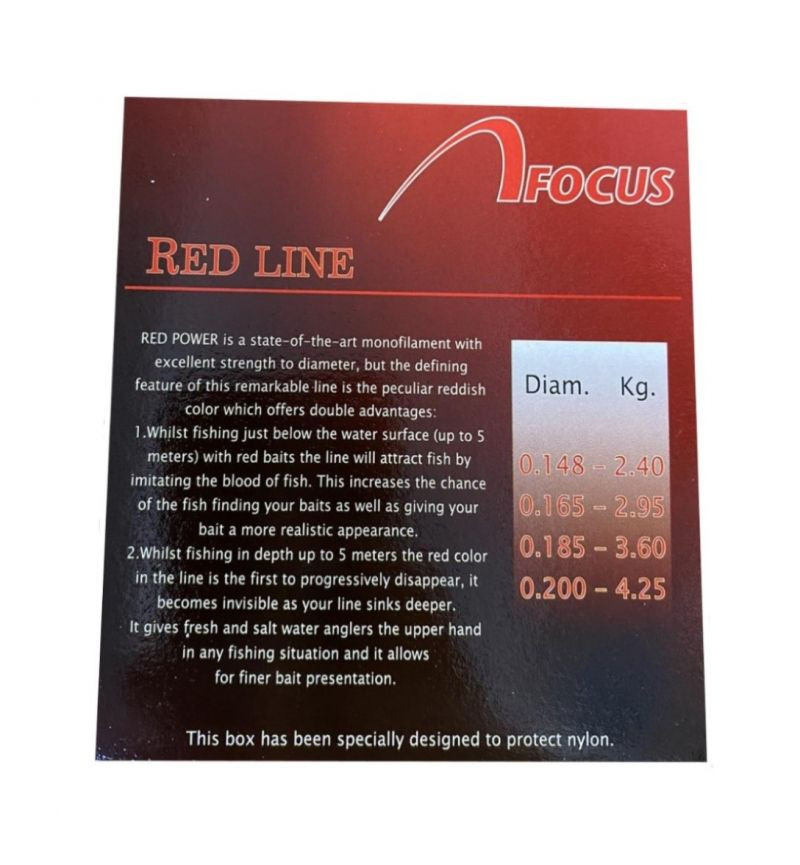 2. При риболов на дълбочина над 5 м червеният цвят на влакното постепенно изчезва и то става незабележимо. Red Line дава предимство на любителите на морския и сладководния риболов във всяка ситуация, като помага и по-доброто представяне на примамката. Монофил с флуорокарбоново покритие.