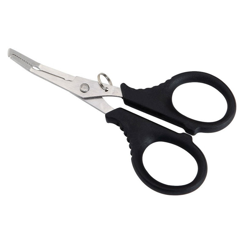 Ножица за плетено влакно от неръждаема стомана. Конструкцията на модела предлага използването и за разделяне на split ring, както и за хващане на плетено влакно за по-лесно и стабилно рязане.