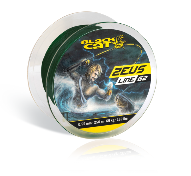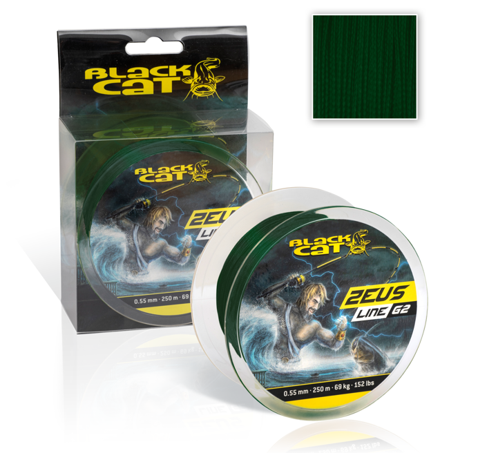 Black Cat Zeus Line G2 Green е 8-нишково, с идеално кръгло сечение, изключително издръжливо, плетено влакно за основна линия за всички аспекти на съвременния риболов на сом.