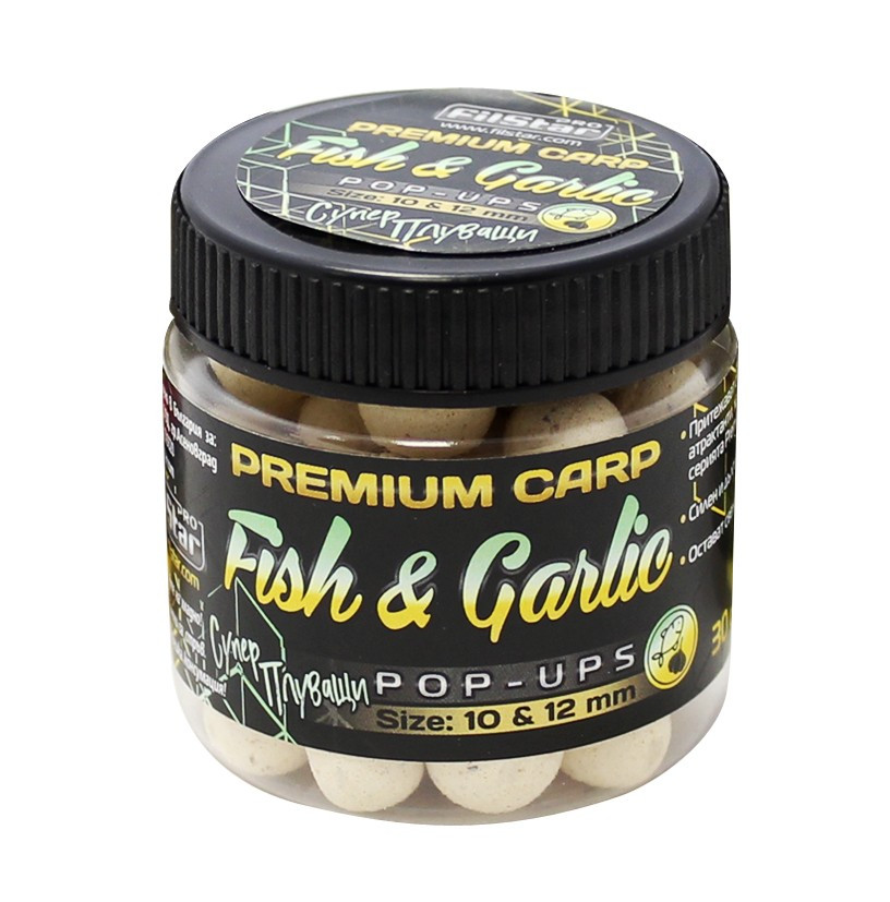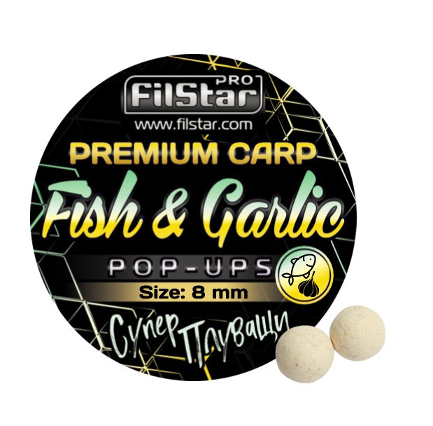 Висококласни Pop-Up топчета от серията Premium Carp на Filstar, съдържащи атрактанти и стимуланти, които ги правят лесно откриваеми и желани от трофейните екземпляри.