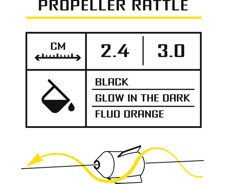 Дрънкалката с витло започва да се върти дори при леко течение във водата, а малки оловни топчета във вътрешността на витлото създават силни шумове.