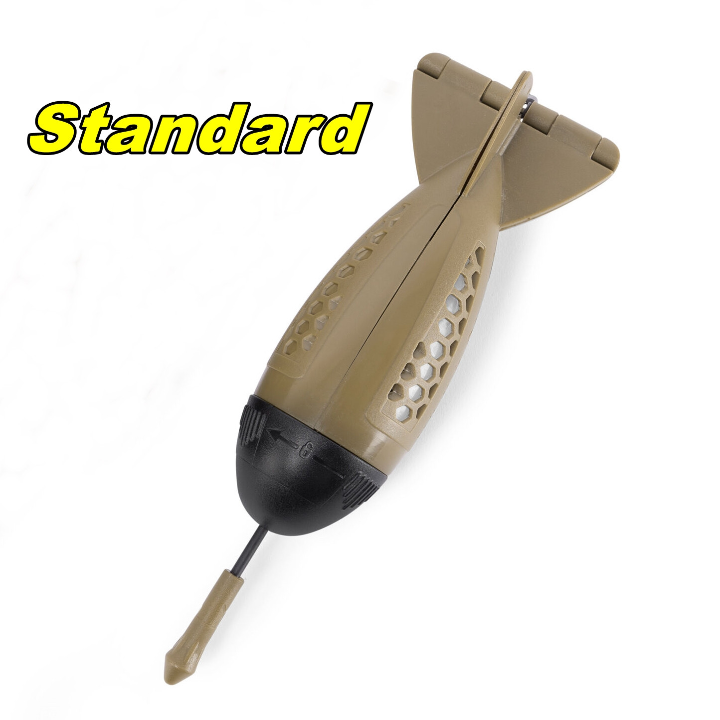 Аеродинамичната, респ. хидродинамична форма със стабилизатори подсигурява както точното замятане, така и достигане на желаното място за захранване на дъното на водоема.