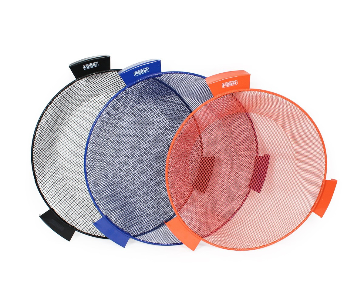 Сито за пресяване на захранка със здрава конструкция и дизайн, който позволява лесно фиксиране върху кофа.