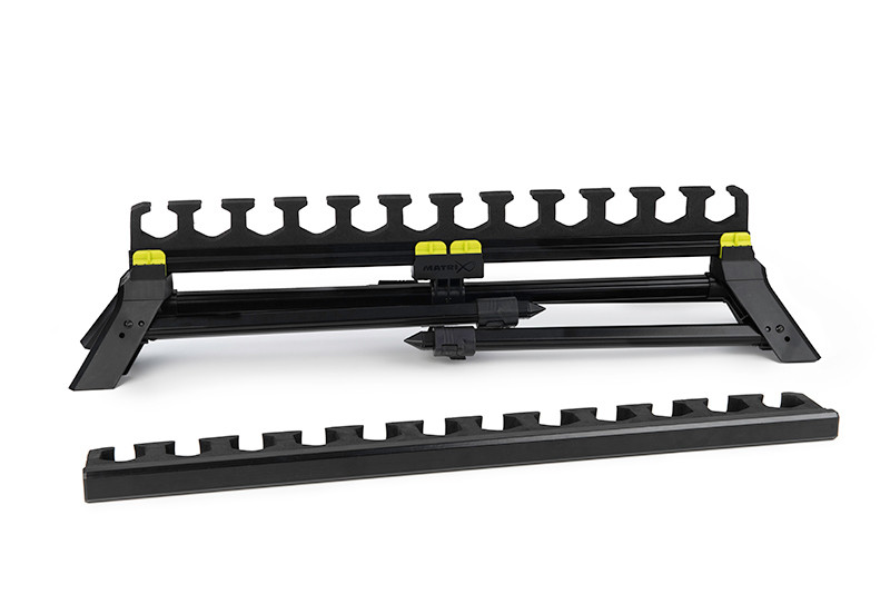 Съвместима с краката за удължаване на MATRIX, за да можете да я поставите на всякакъв терен. Специалният дизайн/форма на гнездата гарантират, че вашите въдици или топсети ще останат винаги на място си.