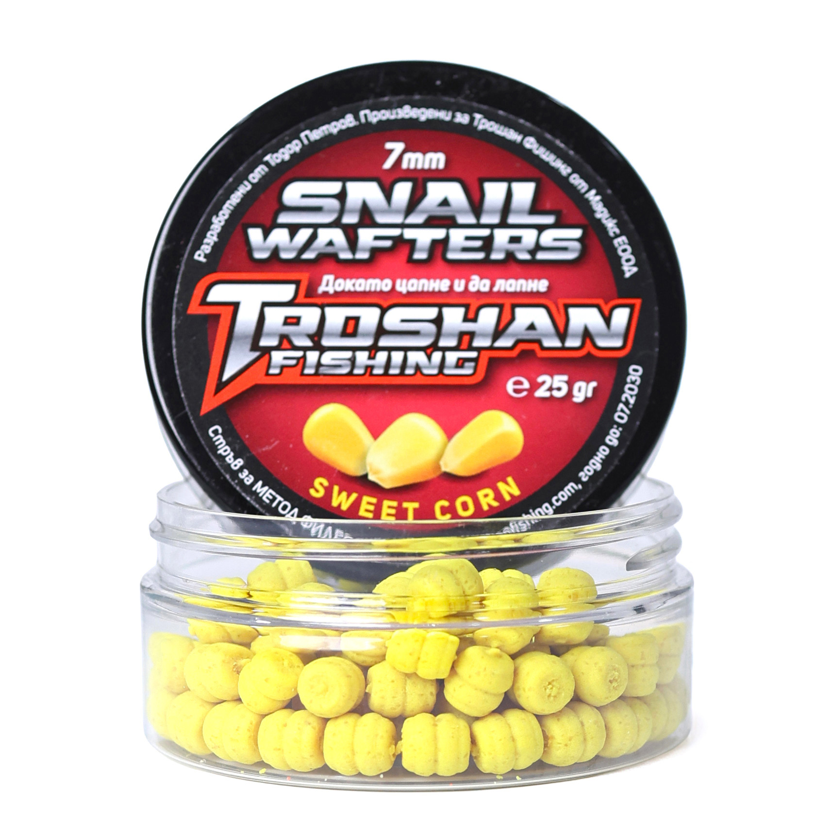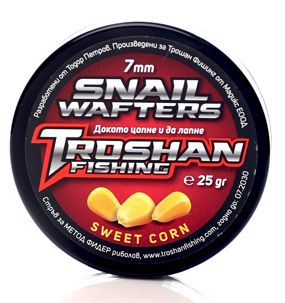 Разгледайте Snail Wafters Troshan Fishing - Sweet Corn 7mm и другите висококачествени риболовни принадлежности в нашия онлайн магазин. Нека всеки ваш излет бъде изпълнен с успешен улов! Поръчайте сега и се уверете сами в ефективността на тази иновативна стръв!