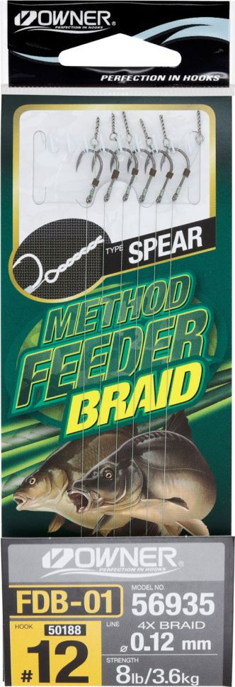 FDB-01 е са нов модел вързани куки за метод фидер с повод от четири нишково плетено влакно. Предоставят бърз, лесен и ефективен начин за монтиране на топче. В гама от 6 размера куки с различен диаметър на влакното за повод. Използвана кука - Iseama w/ EYE 50188.