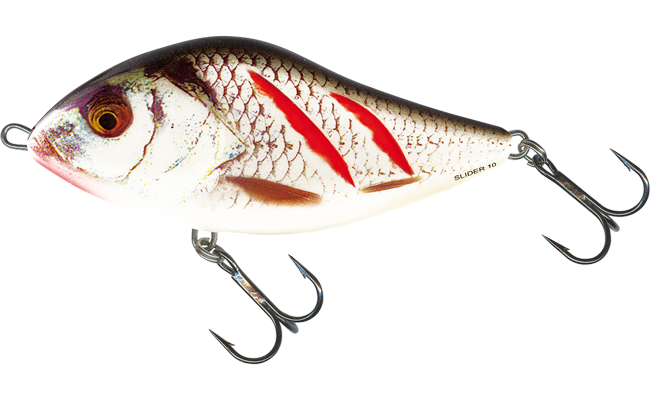 Salmo Slider - воблерът е истински виртуоз в цялото семейство примамки, разработени специално за големи хищници. Ляво, дясно...Ляво, дясно... Криволичещият танц на Slider изкарва хищниците извън нерви и ги изпълва с вулкан от агресия и желание да убиват! Разпенена вода и големи вълни, писък на летящ аванс...Това ви очаква със Slider!